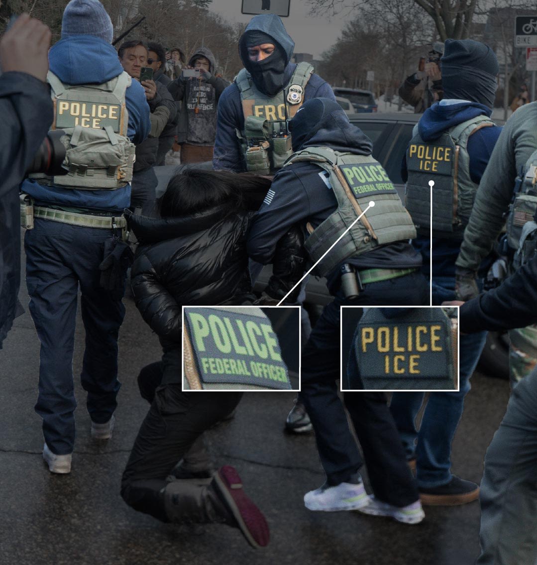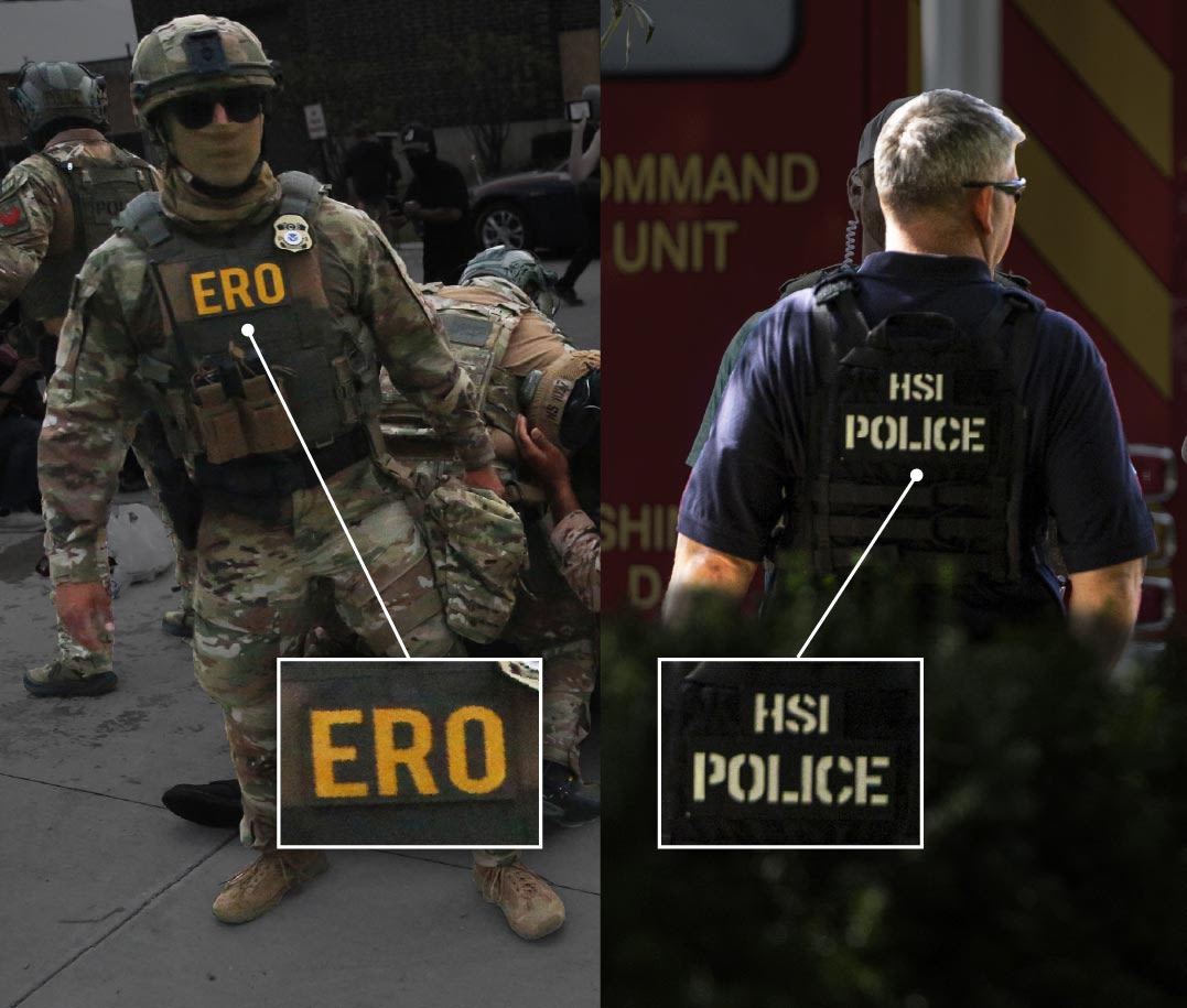 Het probleem voor burgers is dat ICE-agenten niet goed te herkennen zijn; de meesten hebben geen standaard uniform. Ze mogen burgerkleding dragen, of een vest met daarop hun afdeling (ERO, HSI) of simpelweg 'police'.