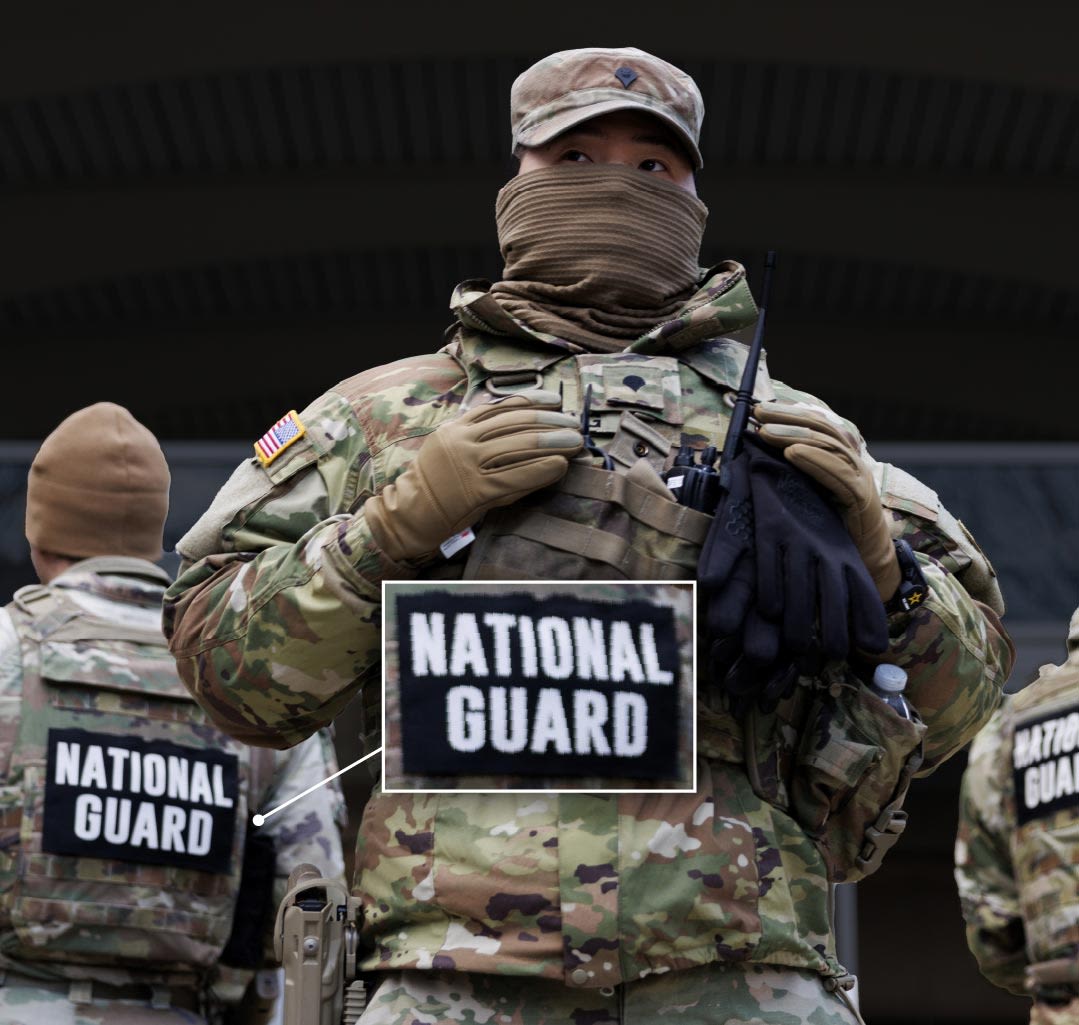 Om zichzelf te onderscheiden van ICE-agenten, die soms ook militaire kleding dragen, heeft de Nationale Garde vaak reflecterende vesten aan. Op nieuwsbeelden is te zien hoe ze koffie en donuts uitdelen aan demonstranten.