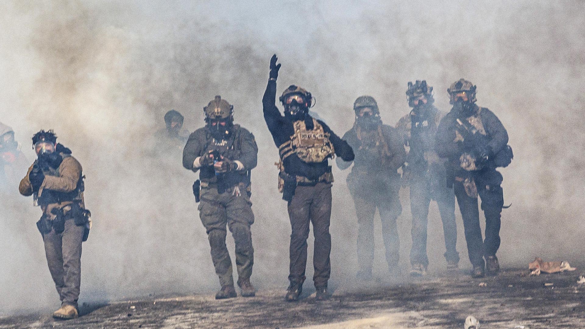 Wat de agenten wel hebben, zijn zware wapens en een militaire uitrusting. Dat is goed te zien op onderstaande foto.