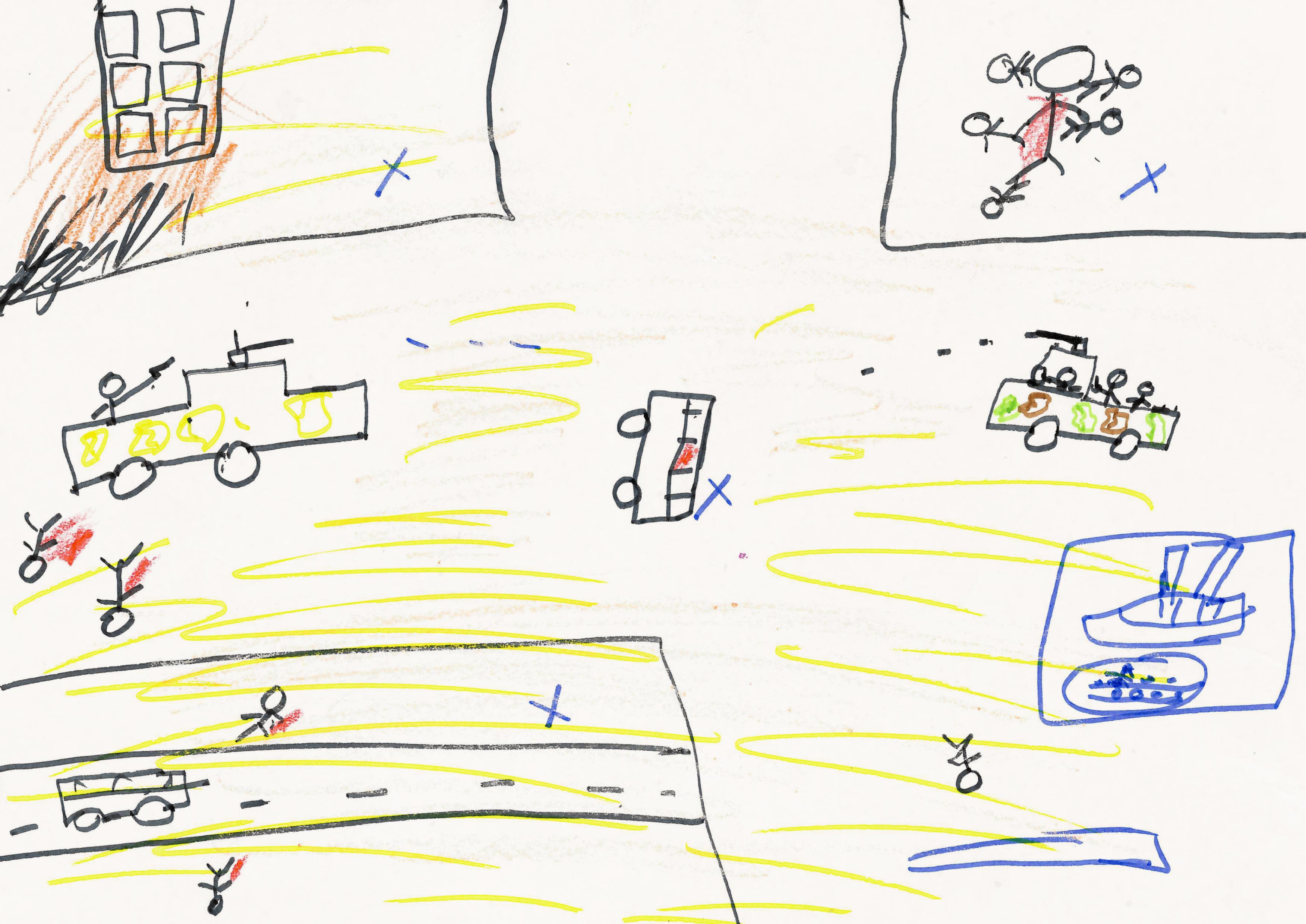 Dit is een tekening van een jongen van 13 uit Khartoem. Hij zegt er het volgende over: