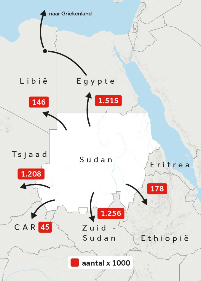 Omdat het in die kampen ook niet altijd veilig is, vluchten veel inwoners de grens over. De meesten gaan naar Egypte, Tsjaad en Zuid-Sudan. Vanuit Egypte reizen minderjarigen soms door naar Libië, om vanuit dat land de oversteek naar Europa te maken.