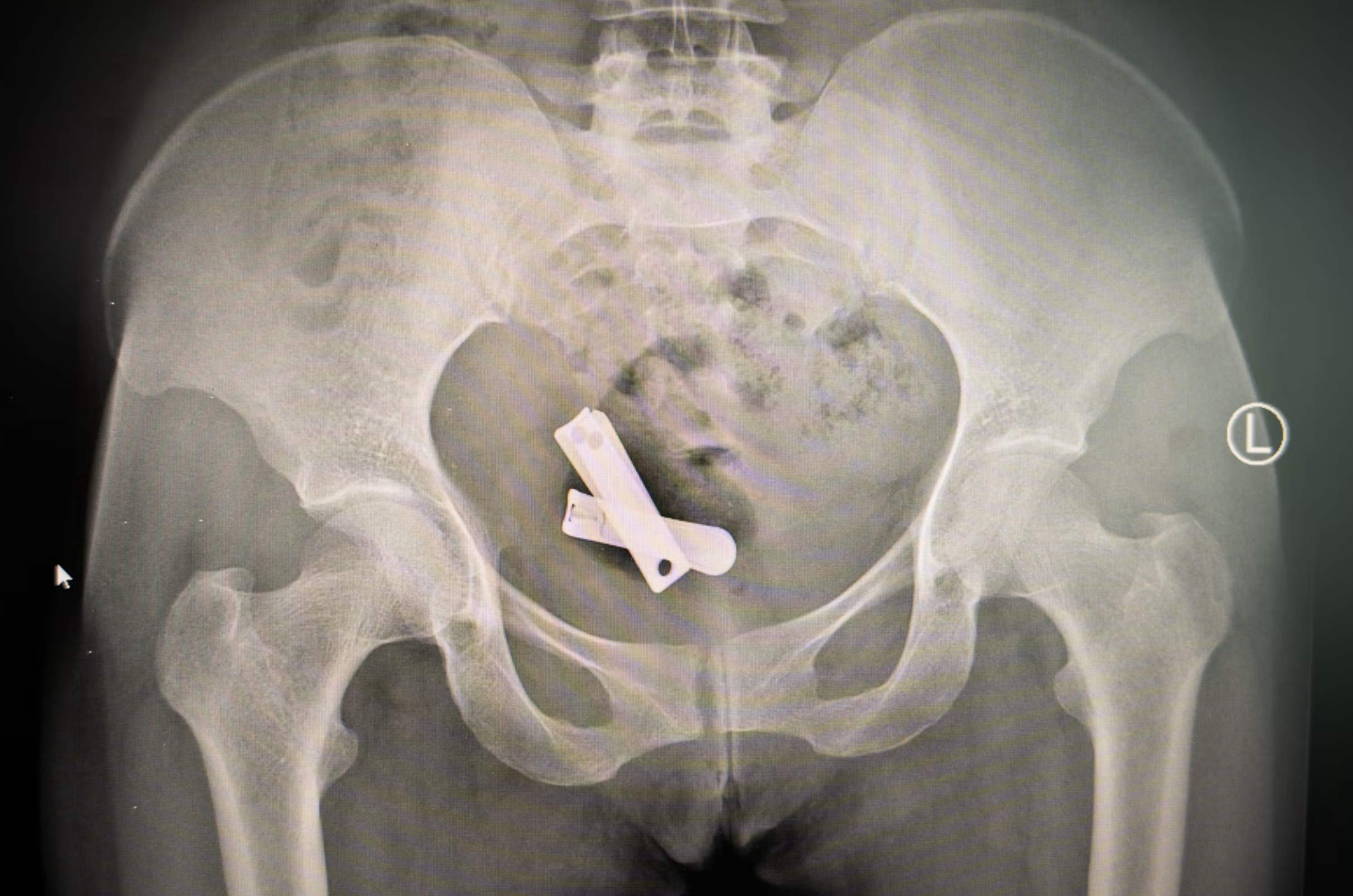 Deze röntgenfoto laat nagelknippers zien in de baarmoeder van een vrouw. Foto: Ximena Borrazás