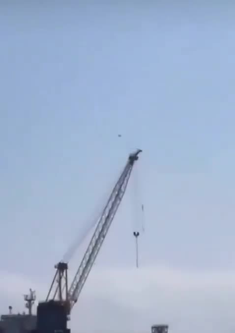 Een drone slaat in op een havengebied in Oman.