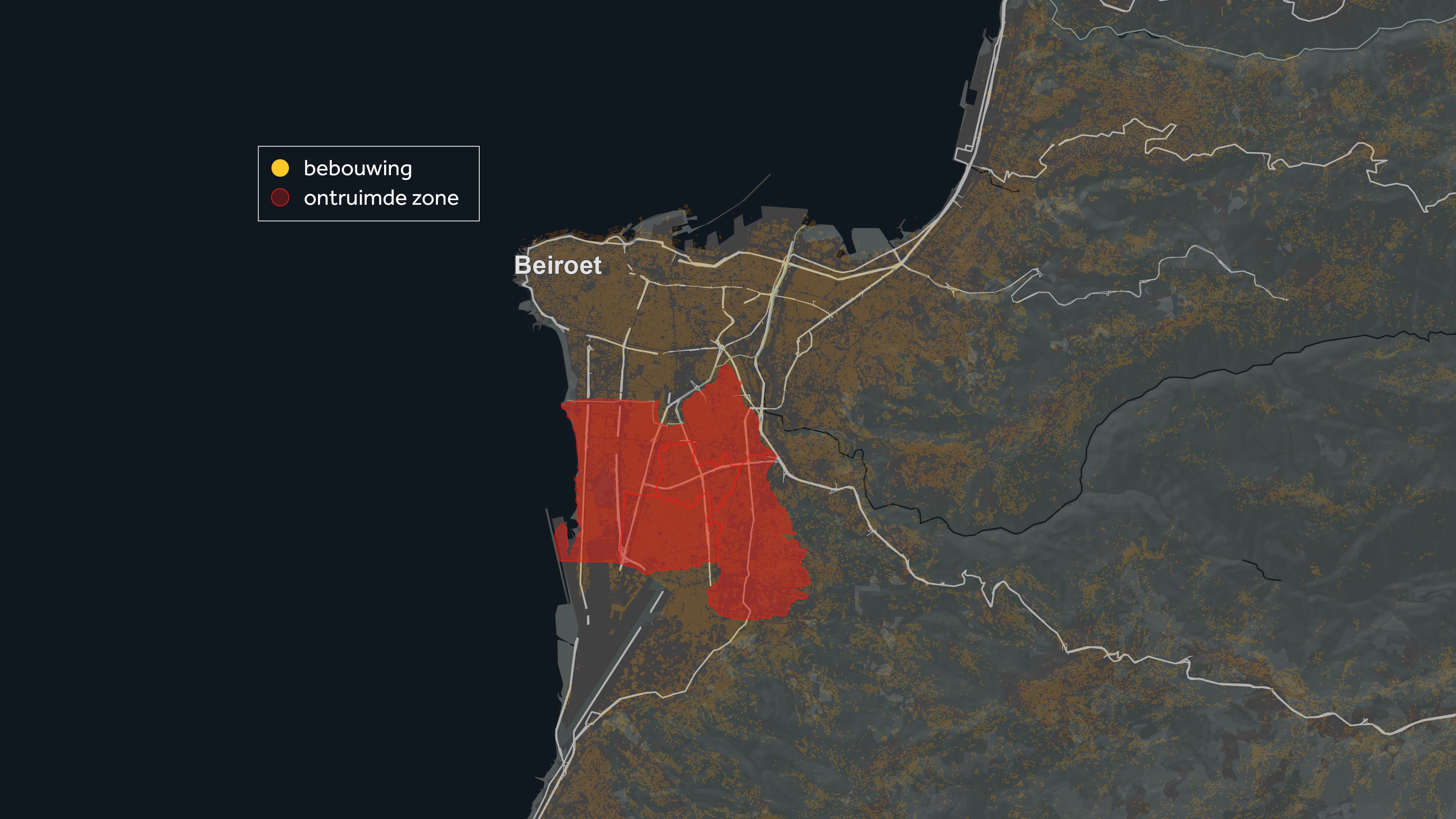 Ook in Beiroet kregen vier wijken evacuatiebevelen. Volgens Netanyahu omdat dat Hezbollahwijken zijn. Maar er wonen ook veel burgers. Inmiddels staat een gebied net iets kleiner dan Leiden leeg.